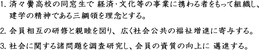 現在では正式名称を済商会とし、以下の目的を持って活動しています。